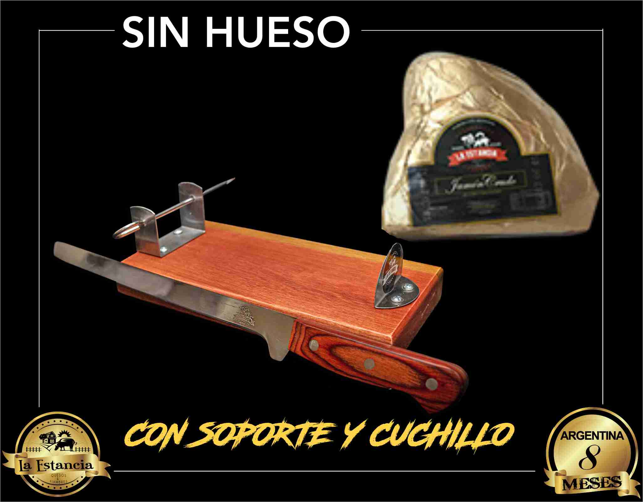Jamón Crudo Tipo Ibérico Sin hueso Con base Y Cuchillo Jamonero